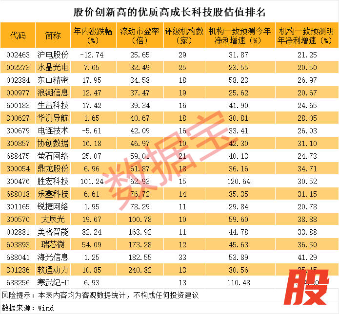 创历史新高的优质高成长科技股曝光,19股上榜创历史新高的优质高成长科技股曝光,19股上榜